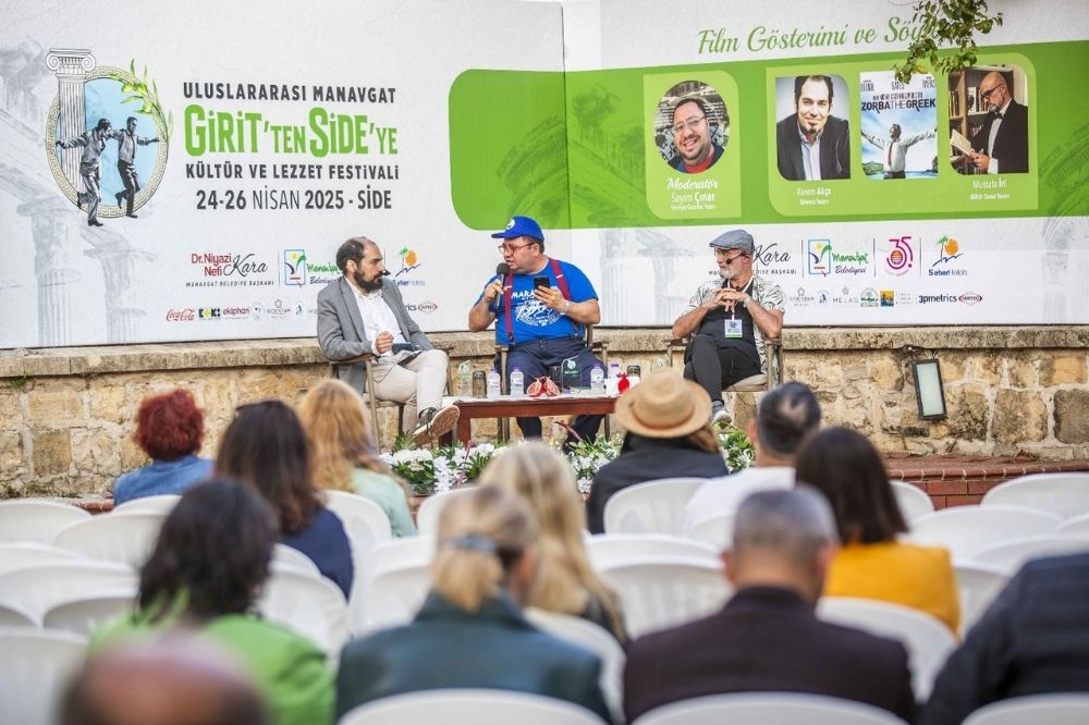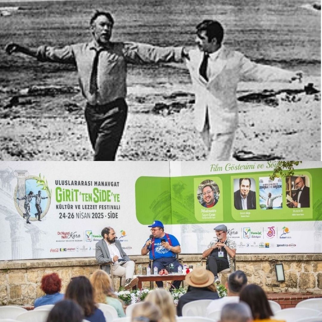 Manavgat Belediyesi’nin ev sahipliğinde bu yıl ilki düzenlenen “Uluslararası Girit’ten Side’ye Kültür ve Lezzet Festivali” müzik, dans, yemek ve söyleşilerle oldukça renkli geçerken, sinema severleri de unutmadı. Festivalde yönetmen Kakoyannis’in, Kazantzakis’in ünlü romanı Zorba’dan uyarladığı kült filmin gösterimi yapıldı, ardından da film üzerine bir söyleşi gerçekleşti.