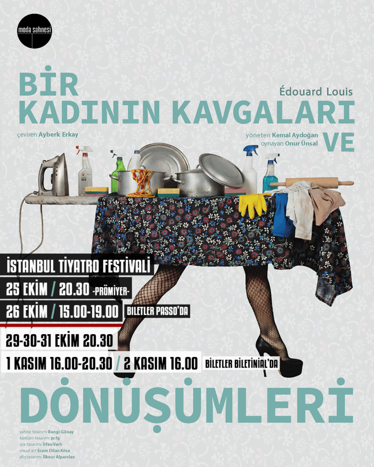 Fransız edebiyatının dikkat çeken isimlerinden Édouard Louis’nin çarpıcı romanı “Bir Kadının Kavgaları ve Dönüşümleri” moda sahnesi tarafından sahneye taşınıyor. Kemal Aydoğan’ın yönettiği, Onur Ünsal’ın oynadığı oyun ilk gösterimini İKSV tarafından düzenlenen 29. İstanbul Tiyatro Festivali kapsamında moda sahnesi’nde yapacak.