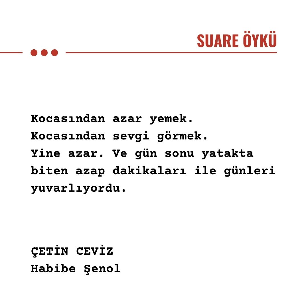 Zeynep su taşıyor, çayları yeniliyor, konuklarının rahatını sağlamak için etraflarında dört dönüyordu. Eksik hizmet sonucu kocasından dayak yeme ihtimali yüzde yüzdü. Saat gece yarısına yaklaşırken çocukları yatırıp, geceliklerini giydi ve yastığına başını koydu. Tütün kokulu nefesiyle göğüslerine dokunan kocasını itemezdi. Gözlerindeki yaşları gizleyerek kendini ona teslim etti. Kocasının ellerini üstünde hissederken içi bulanıyor, ağzından dökülecek olan küfürleri yutmak zorunda kalıyordu.