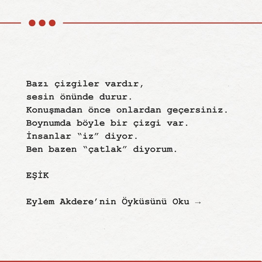 Yolun karşısındaki vitrinde kendimi gördüm. Saçım daha derli topluydu. Yüzüm aynıydı. Boynumdaki çizgi, camın yansımasında ince bir çizgi gibi duruyordu. Bir şeyin başlangıcı gibi de, sonu gibi de değil.