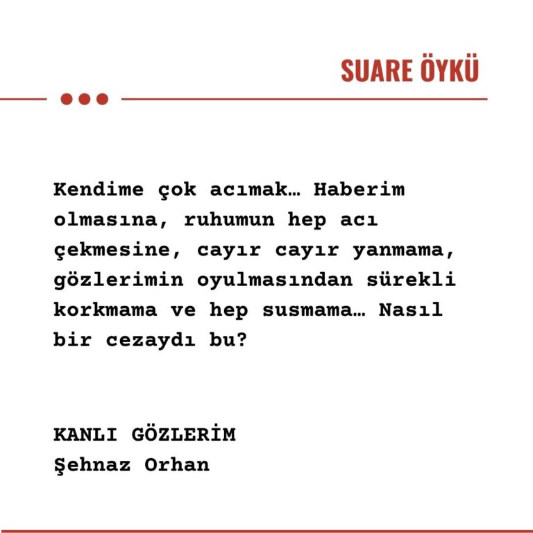 Kendime çok acımak… Haberim olmasına, ruhumun hep acı çekmesine, cayır cayır yanmama, gözlerimin oyulmasından sürekli korkmama ve hep susmama… Nasıl bir cezaydı bu?