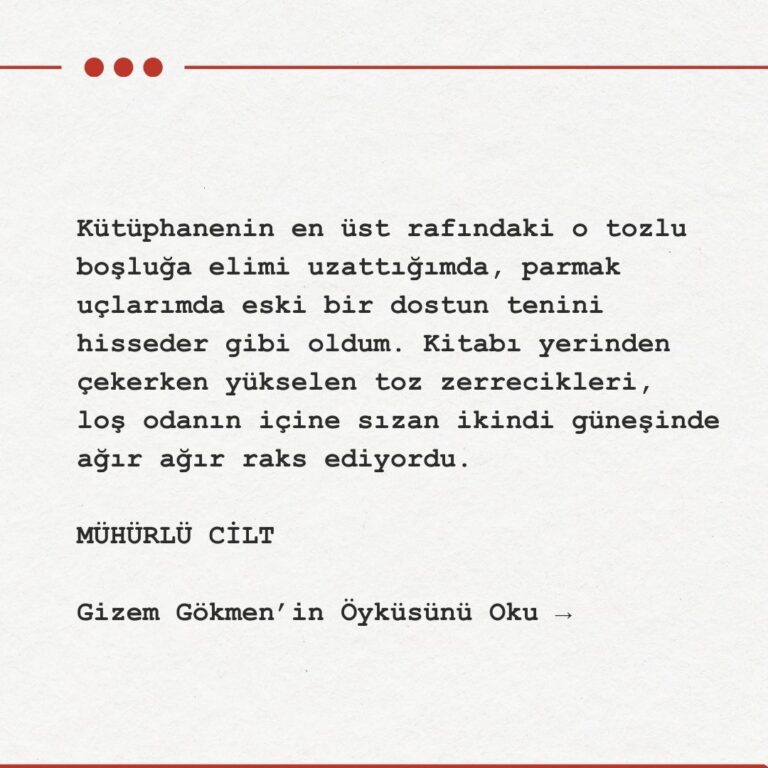 Sayfaları usulca çevirmeye başladım. Mevsimlerin mürekkebin içinden geçip gidişine şahitlik ediyordum. Kış geldiğinde satır araları ayazdan kaskatı kesilmiş, bahar bölümlerinde ise harflerin arasından sanki yaban çiçekleri fışkırmıştı. Birden durdum. Bir sayfa ansızın kor bir kırmızıya evrilmişti. O gün kalbimin nasıl bir kalem ucuna dönüştüğünü, kanayan sızılarımın asıl mürekkebim olduğunu anımsadım. O gün, kitabın sırtında o onarılmaz, derin çatlak ilk kez belirdiğinde odada yankılanan o çatırtıyı yeniden duyar gibi oldum.