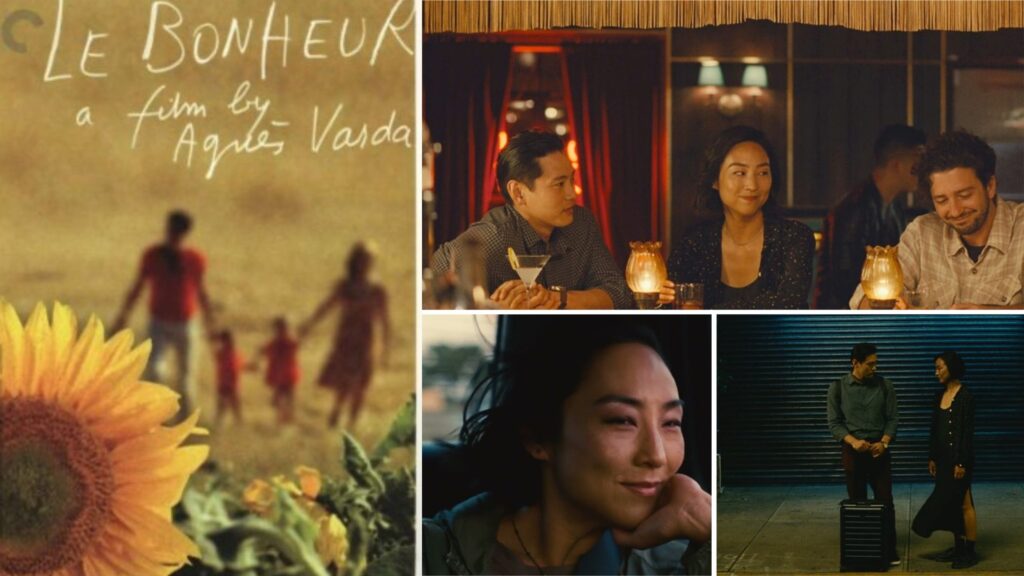 Çekirdek ve kutsal aile üzerinden, Hristiyan ahlakı, öğretisi, batı medeniyeti, kadın, erkek ve gündelik yaşama acımasızca bakan Varda, bir röntgen filmi gerçekliğinde sunar gözlemini! Sınıfsal tespitler, gerçeklikle buluştuğu noktada değer kazanarak, 60’lı yılların ortasında, toplumun genel moral değerlerine bakmamızı, değer yargılarının hassaslığına dokunmamızı sağlar. Provokatif bir filmdir öte yandan “Mutluluk”. Agnès Varda, ilk renkli çalışmasında, içinden resim ve fotoğraf geçen laboratuvar gözlemini, sanata dönüştürür! Sarı, yeşil, kırmızı, mavi renklerin, elbiseler, duvarlar, masalar, çiçekler, ağaçlarla buluştuğu görsellik, yarattığı sahici ‘vintage’ etkiyi, zihne mıhlar adeta!