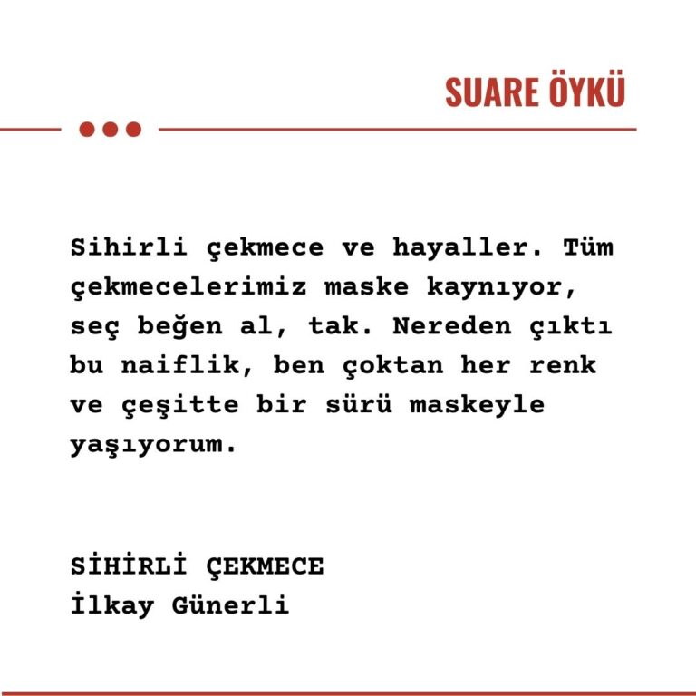 Sihirli çekmece ve hayaller. Tüm çekmecelerimiz maske kaynıyor, seç beğen al, tak. Nereden çıktı bu naiflik, ben çoktan her renk ve çeşitte bir sürü maskeyle yaşıyorum.