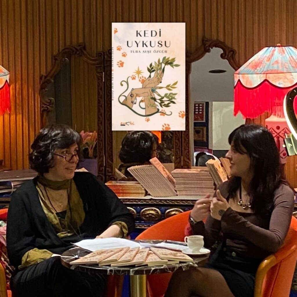 Yazar ve editör Demet Çaltepe’nin moderatörlüğünde soruları yanıtlayan Özgür, romanın bir olaydan değil, “bilincin ritminden” doğduğunu vurgularken, karakter Nejat’ın tekrar eden sahnelerini hem travmanın hem de varoluşun döngüselliği olarak yorumladı. Kedi Uykusundaki büyülü gerçekçiliğin “kaçış değil, hakikatin çatlaklarına eğilme biçimi” olduğunu söyleyen yazar, “Maske” adlı kedinin ise bilinçdışının sessiz tanığı olarak kurgulandığını belirtti.