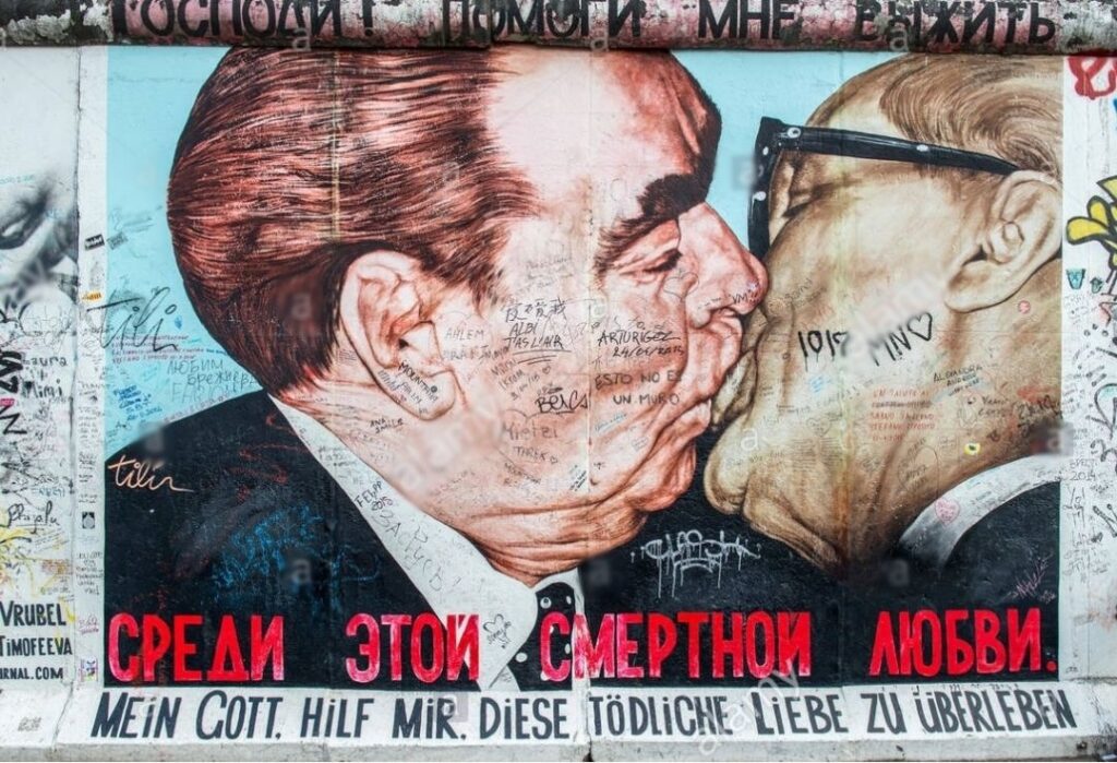 Berlin Duvarı’nın en ünlü grafitilerinden “The Kiss”, Sovyet lider Brejnev ile Doğu Almanya lideri Honecker’ın 1979’daki “kardeşlik öpücüğü”nü ölümsüzleştiren bir görüntüden doğdu. Bu fotoğraf, 7 Ekim 1979’da Fransız gazeteci Régis Bossu tarafından çekildi ve Soğuk Savaş’ın en çarpıcı karelerinden biri hâline geldi. Duvarın yıkılmasından sonra Dmitri Vrubel bu fotoğrafı mural olarak yeniden yorumladı; altına da ünlü cümleyi ekledi: “Tanrım, bu ölümcül aşktan kurtulmama yardım et.” Bugün East Side Gallery’de hâlâ ayakta duran bu eser, politik yakınlık ile baskıcı kardeşliğin ironik bir eleştirisi ve Berlin’in en çok fotoğraflanan hafıza duvarıdır.