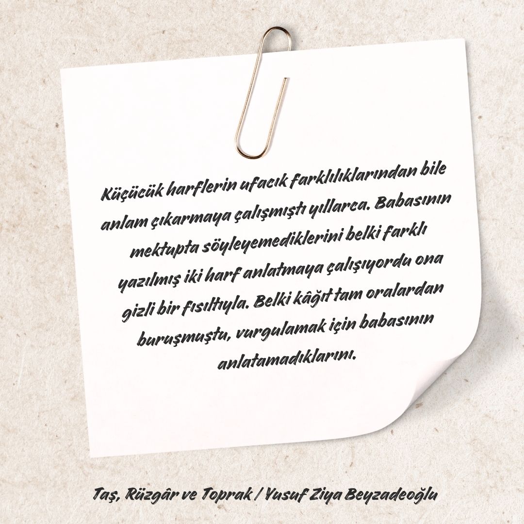 YUSUF ZİYA BEYZADEOĞLU Trene bindiğinde pencere camına yaslanan alnında toz ve ter karışımı bir tabaka oluşmuştu. Dışarıda uçsuz bucaksız bozkır ufukla kesişiyordu ama o kadar beraber, aynı zamanda o kadar ayrıydı ki… Gördüğü bu tanıdık kırık dökük evlerde geçen onlarca hikâyeyi düşündü. Esen rüzgâr sürekli onlardan parçalar götürüyordu. Rüzgârı zamana benzetti. Rüzgâr da bir şeylere ilaç olur muydu? Cebinden çıkardığı eski mektup … Taş, Rüzgâr ve Toprak okumayı sürdür
