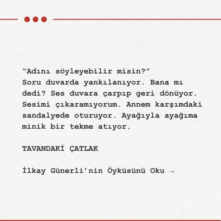 Ses duvara çarpıp geri dönüyor. Sesimi çıkaramıyorum. Annem karşımdaki sandalyede oturuyor. Ayağıyla ayağıma minik bir tekme atıyor. Küçükken de yapardı.