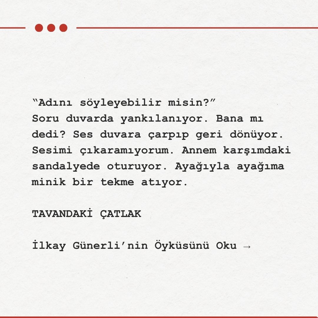 “Birazdan uyuyacaksın.” Birazdan uyuyacağım. Rüya mı her şey? Doktor da geliyor eldiven takmış. Tavana bakıyorum. Küçük bir çatlağa gözüm takılıyor.
