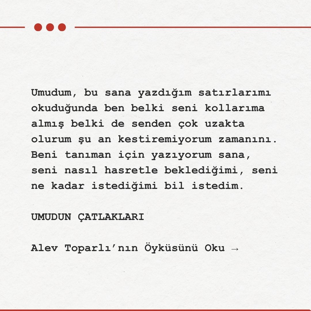 Hastaneye götürüldüğümde öğrendim hamile olduğumu. Bizim için en güzel gün olacağına en acı günümüz oldu böylelikle. Çıkarıldığım mahkemece tutuklandım ve cezaevine gönderildim. Sen şimdi sekizinci ayındasın az kaldı doğmana. Karnımda her oluşan çatlağıma sevgiyle, umutla bakıyorum. Sen benim umudumsun, en kıymetlimin, aşkımın meyvesisin. Ne kadar kalırım burada bilemiyorum, henüz karar verilmedi ama ben sana kendimi anlatmak istedim. Zamanı geri alabilseydim evden hiç çıkmazdım o gün, belki her şey farklı gelişirdi bilemiyorum. Devamlı kendimi suçluyorum ama bir şey de yapamıyorum. Karnımdaki çatlaklarımı okşuyorum, onlar benim umudumun çatlakları ve seni çok seviyorum.