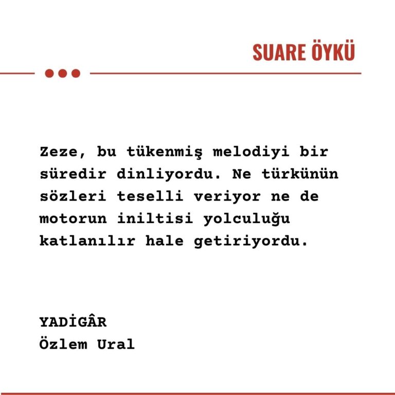 Çalan türkünün sesi, eski bir hatıranın içinden yükselir gibi minibüsün bozuk motorundan gelen sesi bastırıyor, daracık metal gövdeyi bir mezarlık sessizliğiyle dolduruyordu. Zeze, bu tükenmiş melodiyi bir süredir dinliyordu. Ne türkünün sözleri teselli veriyor ne de motorun iniltisi yolculuğu katlanılır hale getiriyordu. Kıpırdanınca, yanı başında pembe yemenisi yer yer sökülmüş yaşlı kadın, yılların yorgunluğunu hatırlatır gibi derinden bir homurtu saldı. Dört duvarı yoktu bu minibüsün, ama insanlar birbirine duvar olmuştu. On beş, yirmi beden, zamanın unuttuğu bu seksenlerden kalma tenekeye nasıl sığınmış, akıl almıyordu. Orada, titreşen koltukların arasında hem türkünün hem de hayatının orta yerinde derin bir yalnızlık içinde oturuyordu Zeze.