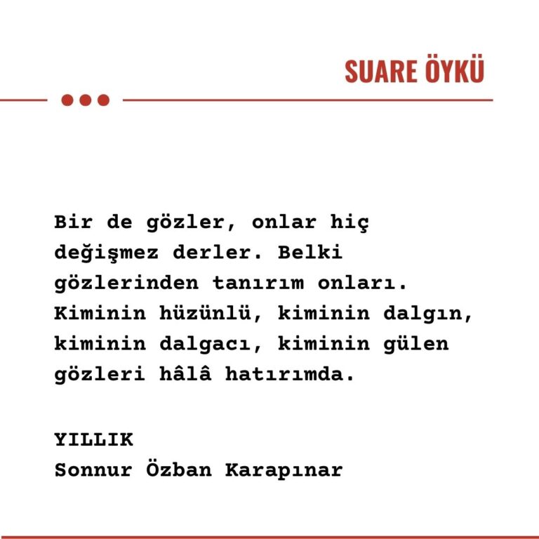 Annem, “Kapıda bu kadar kucaklaşma yeter, üşütürsün sonra,” derken eşikten içeri adımımı attım. Kapı aynı kapı, ev aynı evdi. Sahi ben, ben aynı ben miydim acaba? Fark ettim ki hem bir şeyler eksik, hem bir şeyler fazlaydı. Annem eşyalarımı içeri aldı. Birlikte salona geçtik. Sevgi dolu gözleri üzerimde geziniyordu. Yüz yüze konuşmaya ne kadar hasret kalmışım o an anladım. Eski komşulardan konuştuk. Kimi ölmüş, kimini evlatları yanına almıştı. Sonra konu benim yıllığa geldi. Annem “Yıllık ne ki kızım?” diye sordu. Cevap vermeye kalmadan: “Hatırladım, hatırladım, arkadaşlarının fotoğraflarının olduğu, içinde yazılar olan kitap değil mi bu aradığın?” deyiverdi.